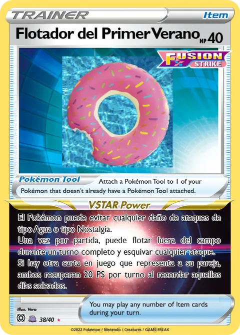 El Pokémon puede evitar cualquier daño de ataques de tipo Agua o tipo Nostalgia. Una vez por partida, puede flotar fuera del campo durante un turno completo y esquivar cualquier ataque. Si hay otra carta en juego que representa a su pareja, ambos recuperan 20 PS por turno al recordar aquellos días soleados.