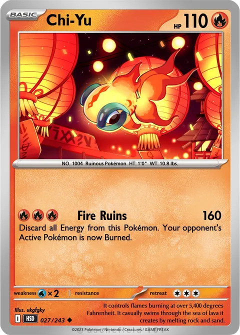 NO. 1004 Ruinous Pokémon HT: 1'0" WT: 10.8 lbs.illus. ukgfgky#027/243It controls flames burning at over 5,400 degrees Fahrenheit. It casually swims through the sea of lava it creates by melting rock and sand.Created by @vincentross744 on 06 December 2025