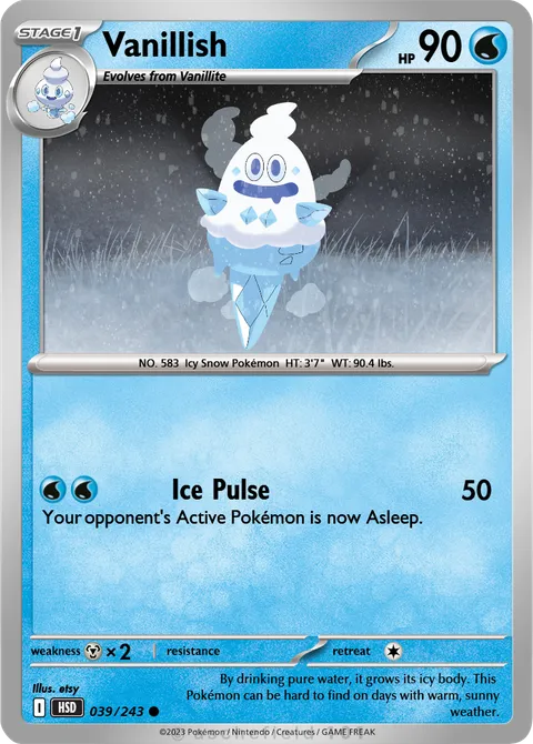 By drinking pure water, it grows its icy body. This Pokémon can be hard to find on days with warm, sunny weather.