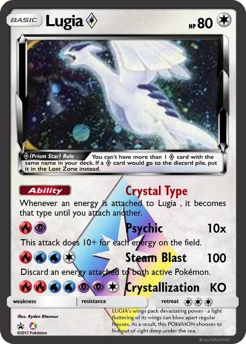Whenever an energy is attached to Lugia , it becomes that type until you attach another.Psychic • 10x