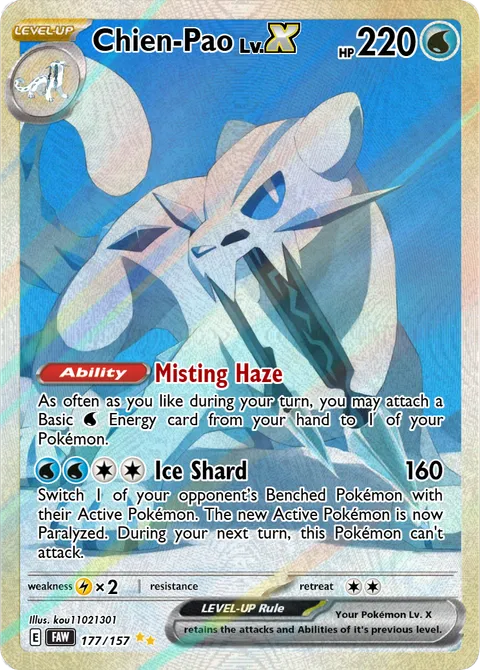 As often as you like during your turn, you may attach a Basic W Energy card from your hand to 1 of your Pokémon.Ice Shard • 160