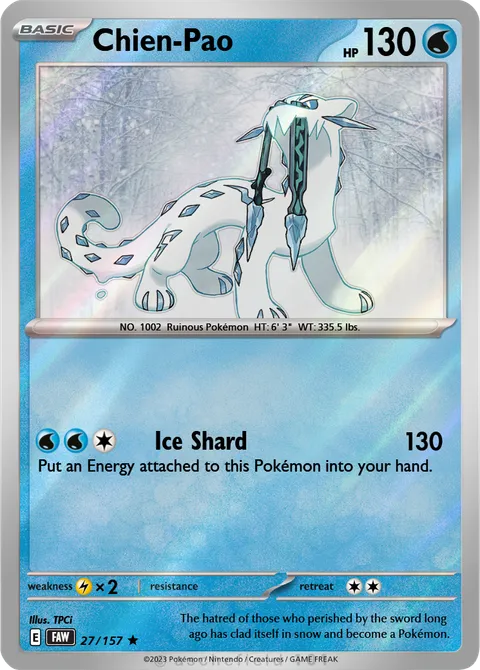 NO. 1002 Ruinous Pokémon HT: 6' 3" WT: 335.5 lbs.illus. TPCi#27/157The hatred of those who perished by the sword long ago has clad itself in snow and become a Pokémon.Created by @xXsavatron on 14 January 2026, last edited on 17 January 2026