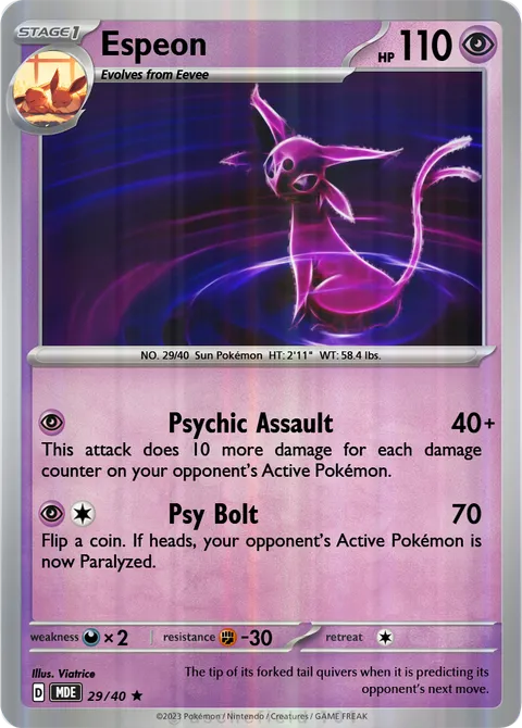 NO. 29/40 Sun Pokémon HT: 2'11" WT: 58.4 lbs.illus. Viatrice#29/40The tip of its forked tail quivers when it is predicting its opponent’s next move.Created by @xXsavatron on 30 November 2025