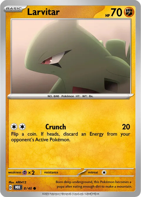 NO. 8/40 Pokémon HT: WT: lbs.illus. All0412#8/40Born deep underground, this Pokémon becomes a pupa after eating enough dirt to make a mountain.Created by @xXsavatron on 27 November 2025