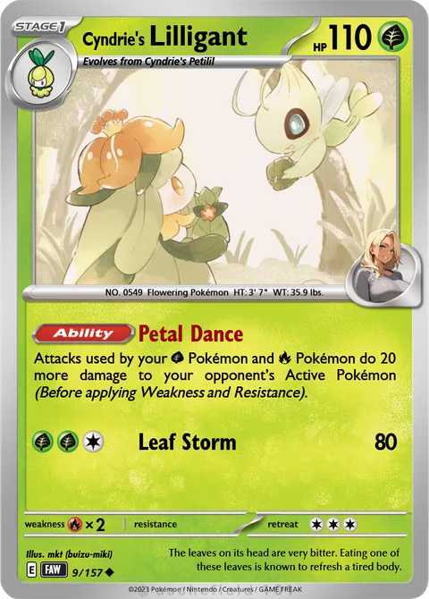 Attacks used by your G Pokémon and R Pokémon do 20 more damage to your opponent’s Active Pokémon (Before applying Weakness and Resistance).Leaf Storm • 80