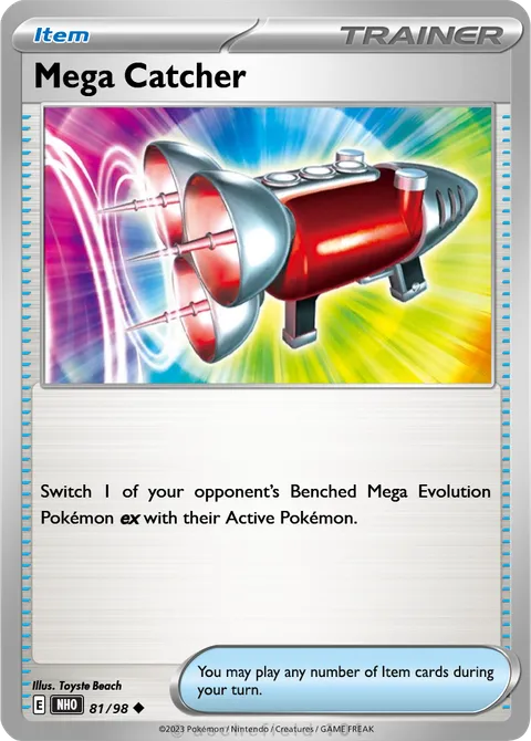 Switch 1 of your opponent’s Benched Mega Evolution Pokémon