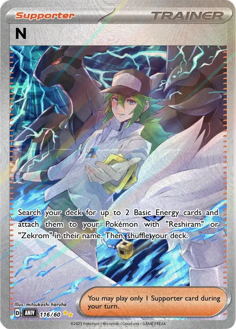 Search your deck for up to 2 Basic Energy cards and attach them to your Pokémon with "Reshiram" or "Zekrom" in their name. Then, shuffle your deck.
