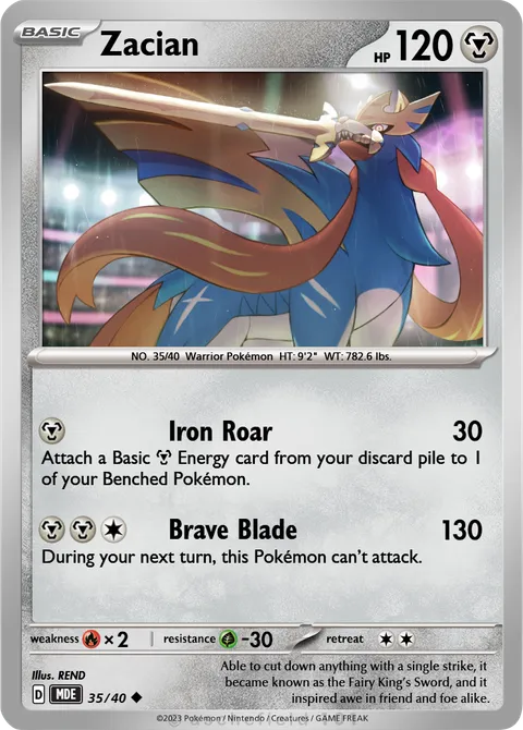 NO. 35/40 Warrior Pokémon HT: 9'2" WT: 782.6 lbs.illus. REND#35/40Able to cut down anything with a single strike, it became known as the Fairy King’s Sword, and it inspired awe in friend and foe alike.Created by @xXsavatron on 30 November 2025