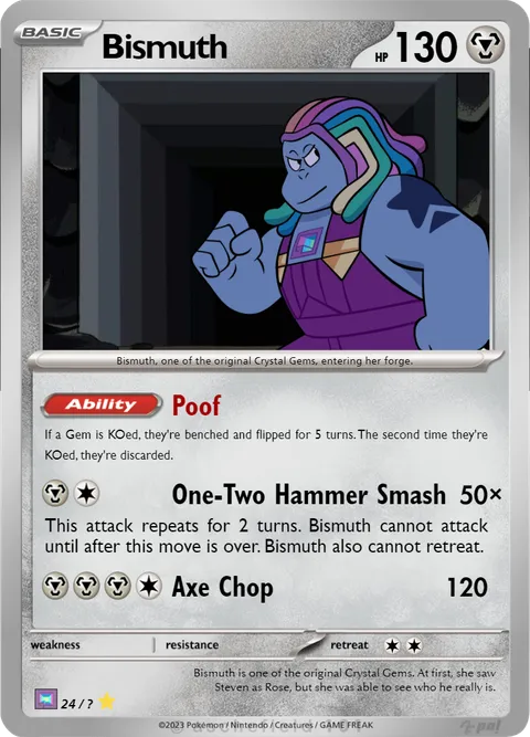 If a Gem is KOed, they're benched and flipped for 5 turns. The second time they're KOed, they're discarded.One-Two Hammer Smash • 50×